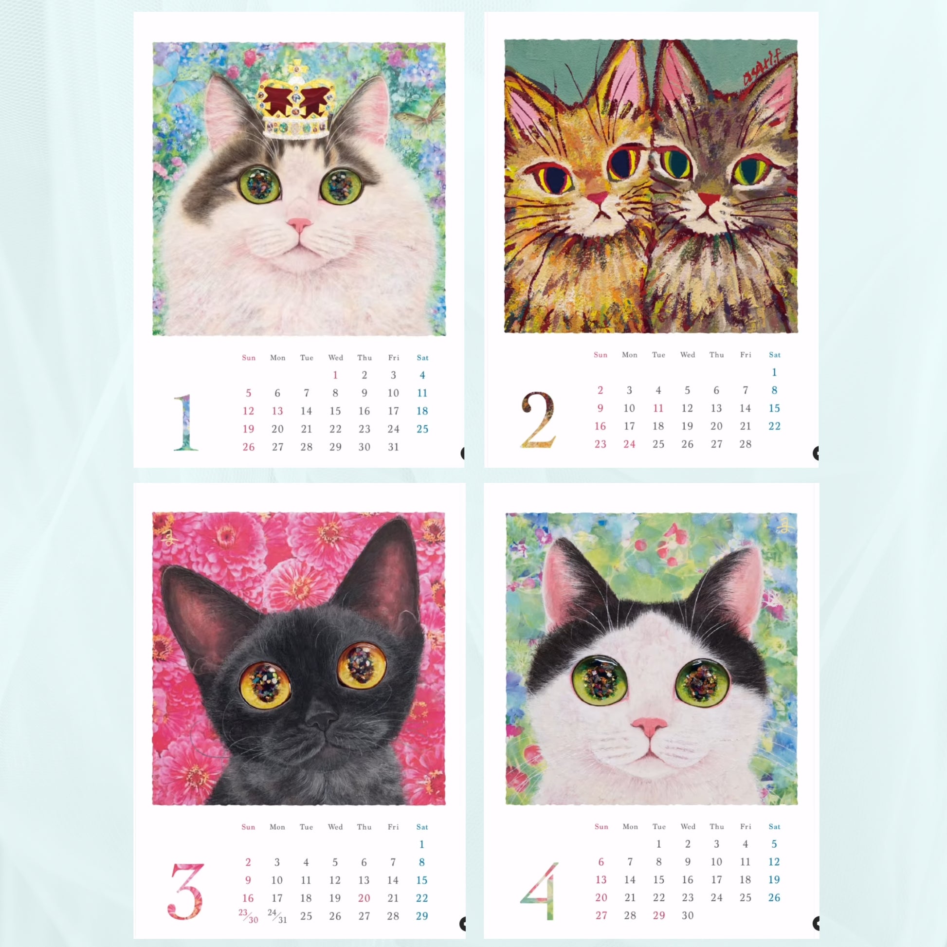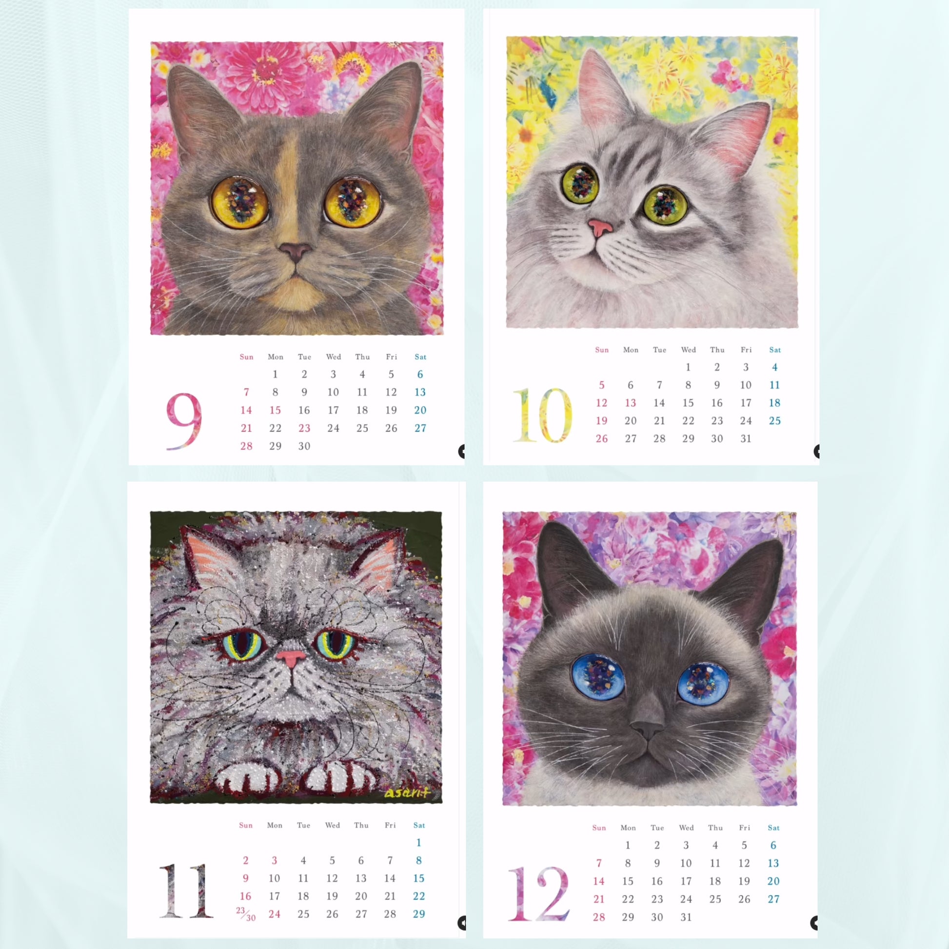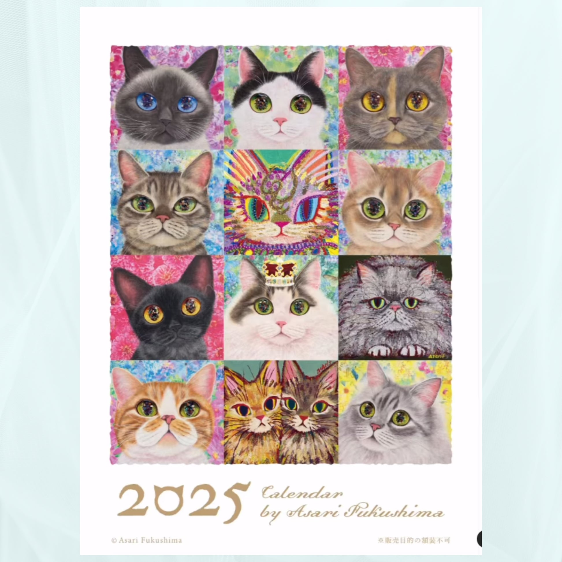 猫 作家 福嶋 吾然有 (フクシマアサリ)さん 2025年 A6 卓上 カレンダー