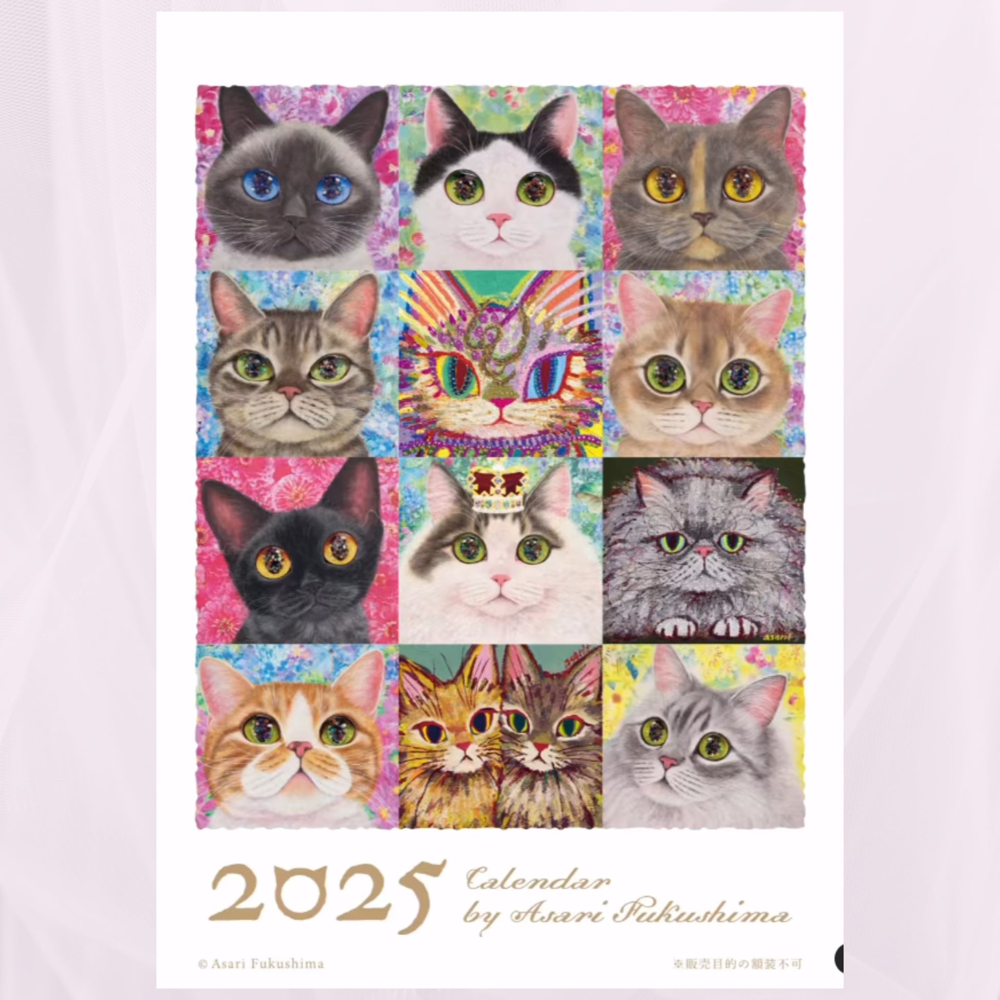 猫 作家 福嶋 吾然有 (フクシマアサリ)さん 2025年 A3 壁掛け カレンダー